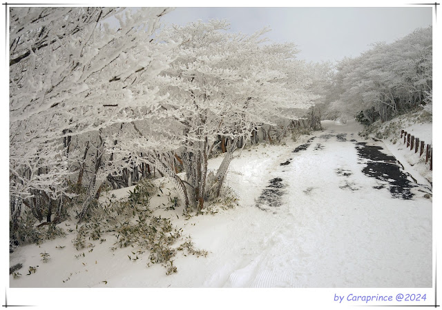 步道穿過樹林裡, 走在這條雪白的的樹冰隧道, 就像走進一個奇幻世界裡, 對於我們這三隻超愛異世界番的宅男來說, 感覺就像穿越到異世界一樣, 是很新奇的體驗。